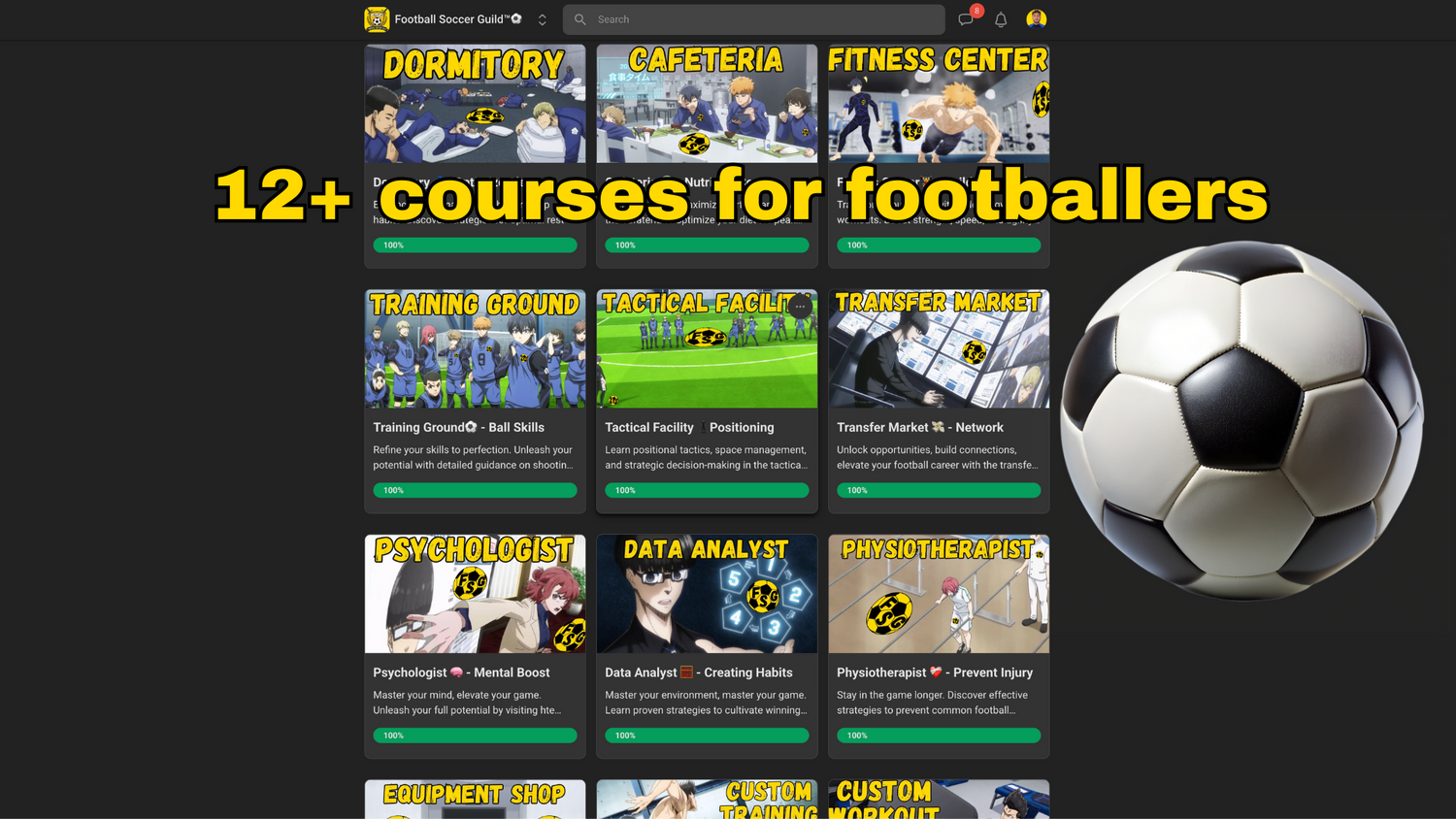 Dozens of video courses covering everything from technical drills, ideal nutrition for footballers, to gym workouts for footballers and how to contact pro clubs for trials.